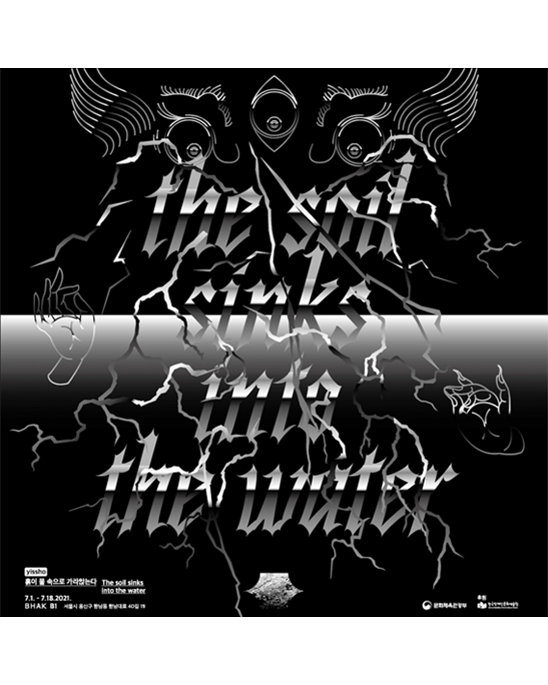 그럼에도 위와 같은 ‘무례한 질문’을 들고 다시 그의 작업으로 돌아와 보자. 이번 전시 《흙이 물속으로 가라앉는다》는 무엇을, 왜 그린 것일까? 또 무슨 의미가 있을까? 오시영의 회화들은 거칠고 가볍게 발려있는 표면에 비해, 나름 무겁고 진지한 종교적, 철학적 사유를 함의하고 있다. 전시 제목인 ‘흙이 물속으로 가라앉는다’는 티베트 불교에서 사람이 죽음에 이르는 과정과 현상을 표현한 세 가지 문장 중 하나이다. 그 세 가지 표현은 다음과 같다. 첫째, 신체의 압박감이 ‘흙이 물속으로 가라앉는다’라고 표현하는 것. 둘째, 몸이 마치 물속에 잠기듯이 신체의 끈적끈적하고 차가운 느낌은 점차 뜨거운 열의 느낌으로 녹아드는데, 이것을 ‘물이 불 속으로 가라앉는다’고 표현한 것. 셋째, 몸이 원자들로 날아가 버리는 듯한 느낌을 ‘불이 공기 속으로 가라앉는다’고 표현하는 것이다. 티베트 불교의 언어를 빌려와, 혹은 그것에 의지해 그가 이야기하고 싶었던 것은 구태의연하게도 ‘죽음’에 대한 어떤 감각이었을 것이다. 그런데 여기서 죽음의 과정을 감각케 하는 공통적인 표현은 ‘가라앉는다’이다. 오시영을 죽음의 경계로 이끈, 그리고 평생의 장애를 안긴 ‘중력’이 전시의 제목으로 떨어진 것만 같다. 화면은 가볍고 테두리는 무겁다.